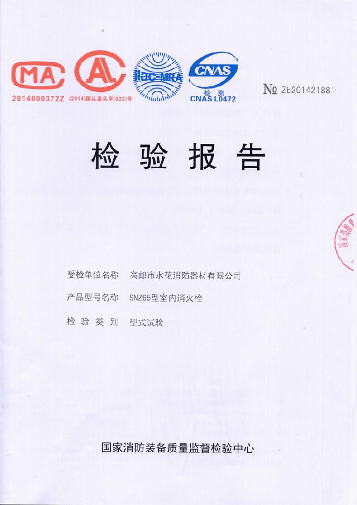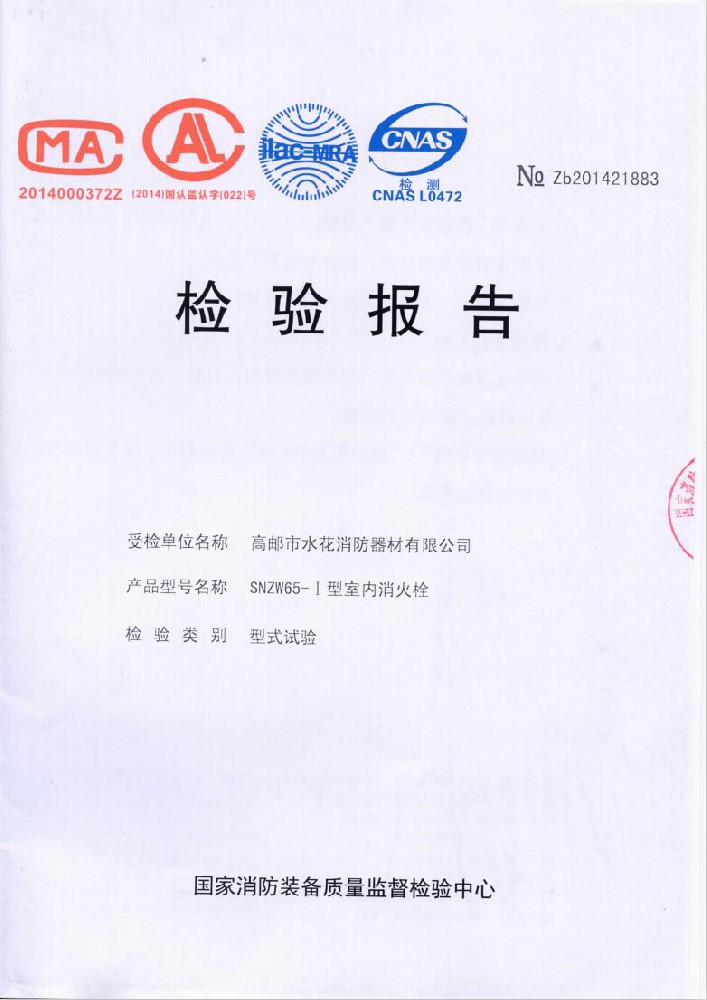 我廠創(chuàng)辦于一九七六年六月,現(xiàn)有職工600人,其中各類技術和管理人員68人。擁有固定資產(chǎn)5000萬元,占地面積35000多平方米,建筑面積25000多平方米。建立了完善的質(zhì)量體系,取得多種“計量合格確認證書”,并成為江蘇及多省的消防協(xié)會會員單位。工廠技術力量雄厚,生產(chǎn)和檢測設備齊全,工藝先進。生產(chǎn)“水花”牌水帶接口: KDK65, KD65,KY65,KN65。消防水槍: QZG3.5/7.5, QZ3.5/7.5,QP8/0.7Z泡沫水槍。室內(nèi)消火栓: SN65, SNW65-I,SNZ65, SNZW65-I。 消防軟管卷盤JPS0.8-19/25。生產(chǎn)的“郵花”牌,消防有襯里水帶:65-8、10、 13、 16、20、 25型; 80-16、 20、25型。水帶接口: KD50、65; KY50、65;KN65。消防水槍: Q2Z3.5/7.5、 5。 室內(nèi)消火栓: SN65, SNW65-I, SNZ65, SNZW65-I。 并于二零一五年五月通過公安部消防產(chǎn)品合格評定中心3C換版檢驗,獲得以上產(chǎn)品所有的強制認證證書,準予生產(chǎn)和銷售,產(chǎn)品行銷全國各地,深受廣大用戶好評。